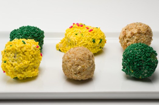 These “Cake Balls” are what I consider a decadent treat. The flavors were yellow, chocolate, and even red velvet cake. The colors on the outside ranged from the bright vibrant yellow to a warm toasty light brown to a dusty red, to mention a few.