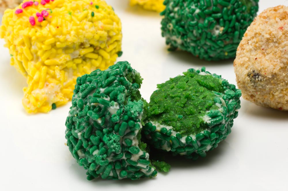 Some of the local bakeries have introduced something a little different but I’m not sure it is something that is new. At a recent visit to the Bleeding Heart Bakery in Chicago, IL I was perusing there display and came a cross these little colorful balls.